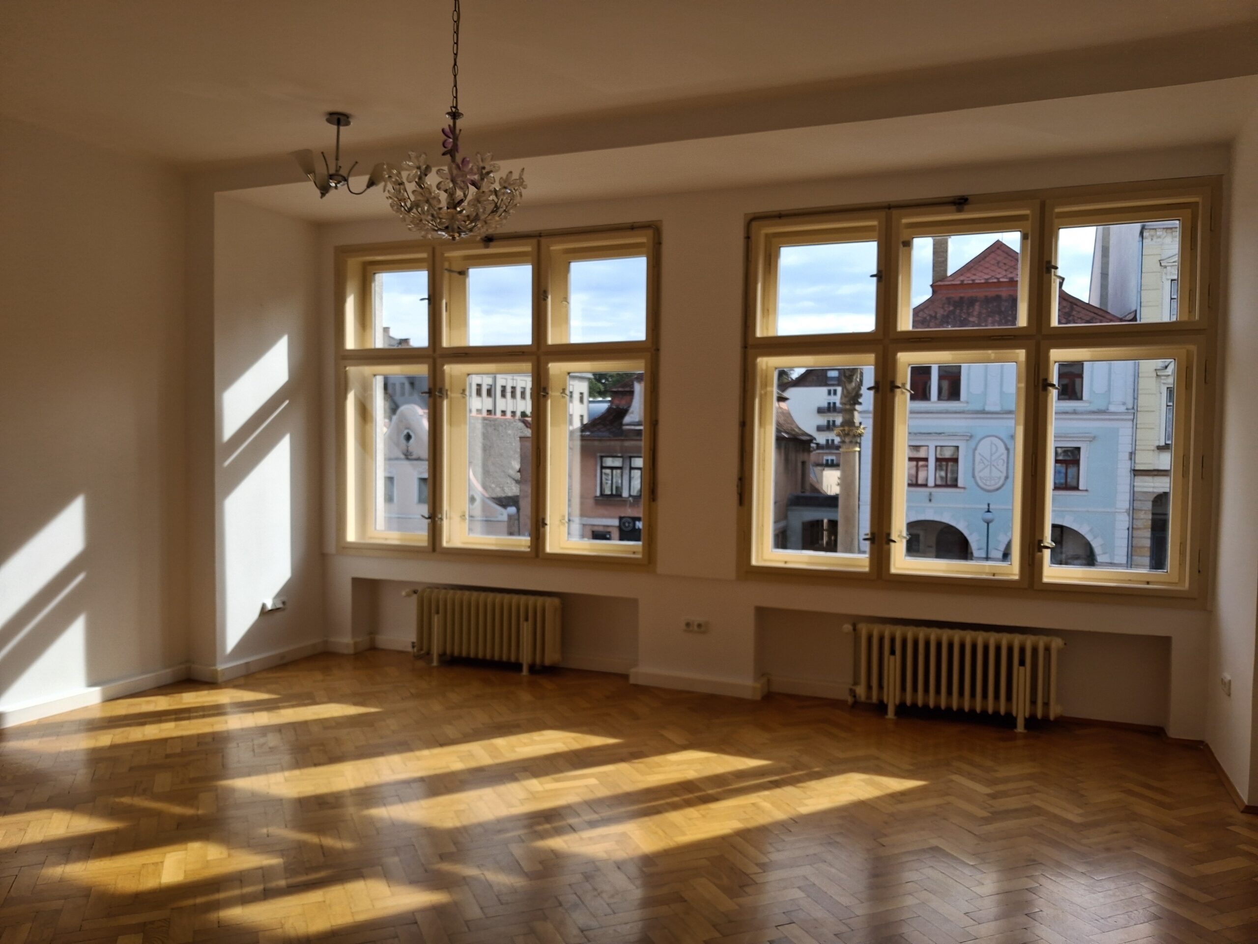 Nabízíme k pronájmu slunný byt 3+kk o výměře 93,50 m2, který se nachází v 3.N.P. objektu na Masarykově náměstí Nové Pace.